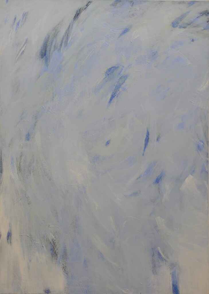 “In Bewegung und noch frisch und feucht”. März 2025, Acryl, 80 x 80 cm